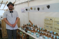 青いうつわが特徴の小林さんの作品。