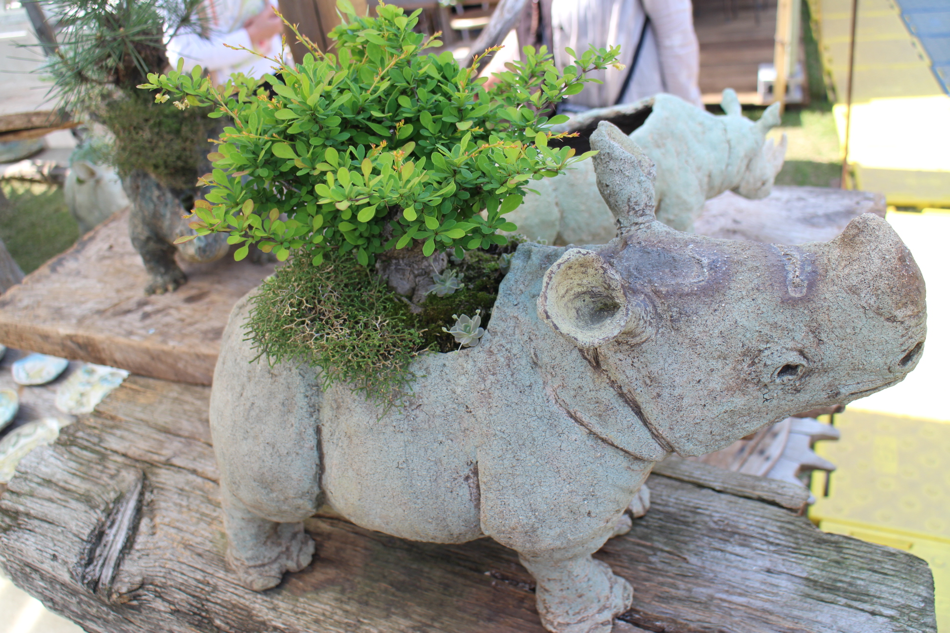 可愛い表情のサイにいろんな植物が植えられてて可愛い!
