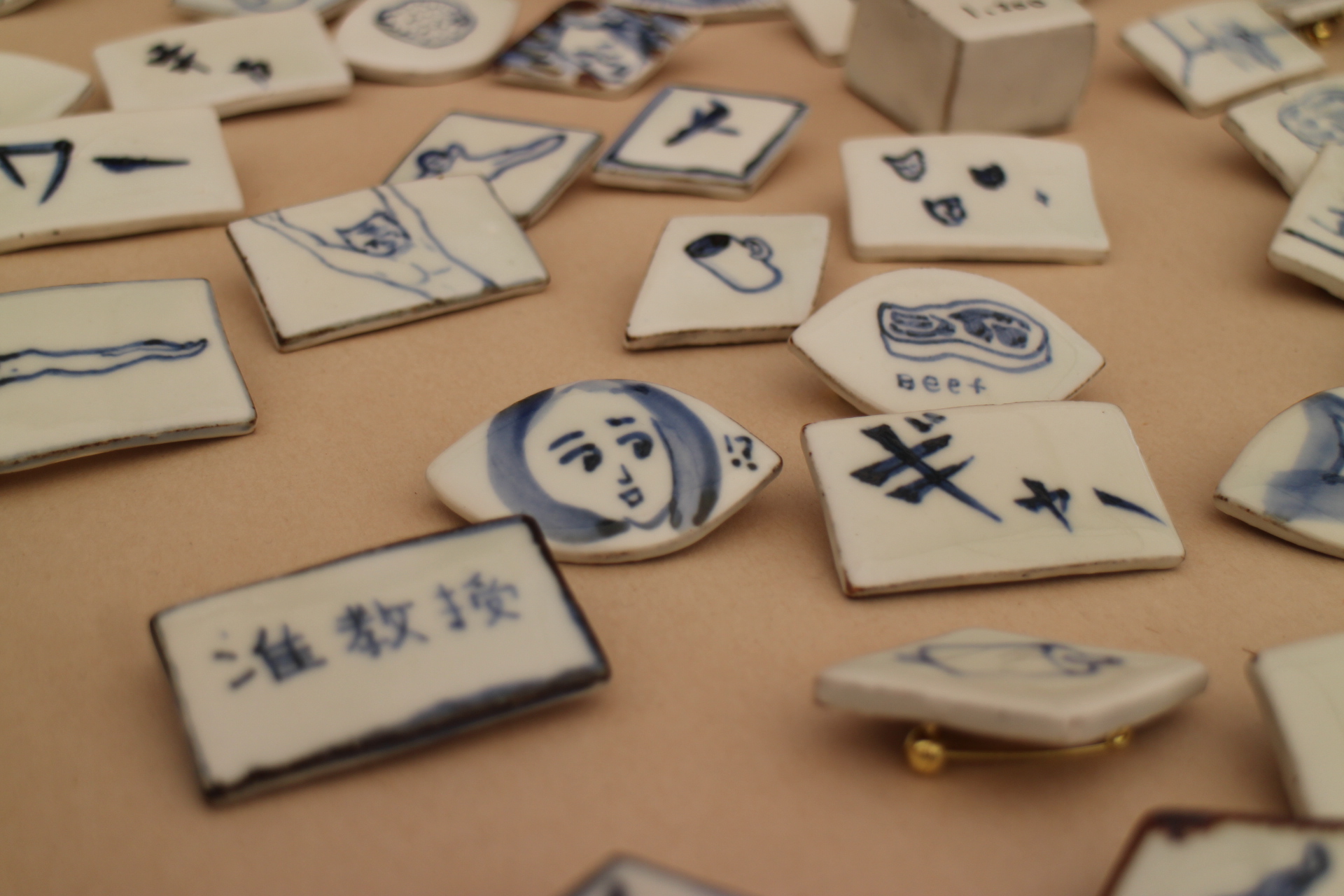面白いモチーフや文字が描かれたバッジがたくさん!